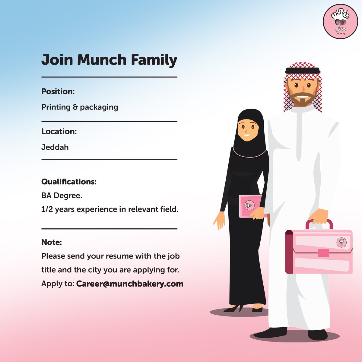 اعلن منش بيكري توفر وظائف للرجال والنساء لحملة الثانوية فأعلى بالرياض وجدة