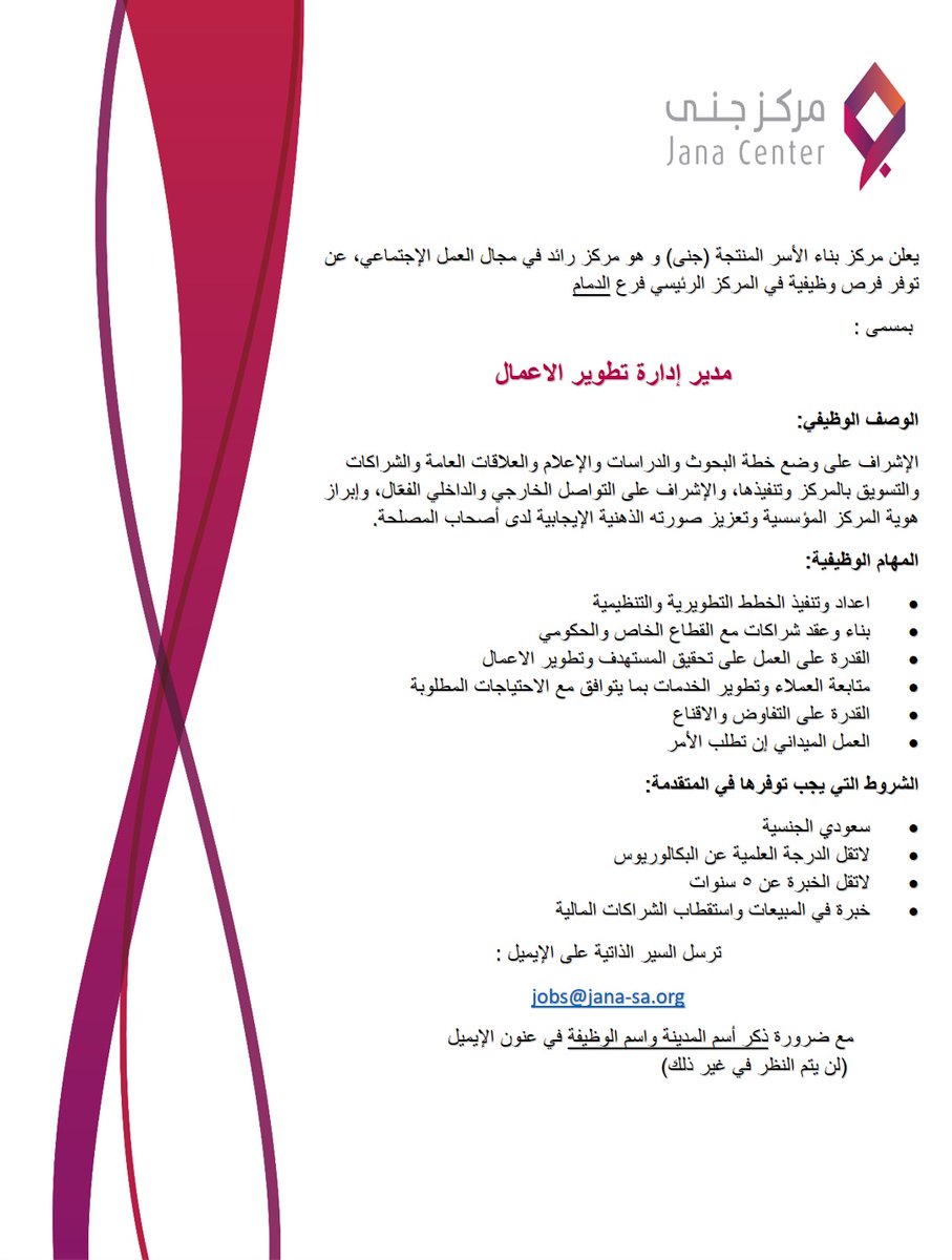 2- مدير إدارة تطوير الأعمال (الدمام) (تفاصيل):