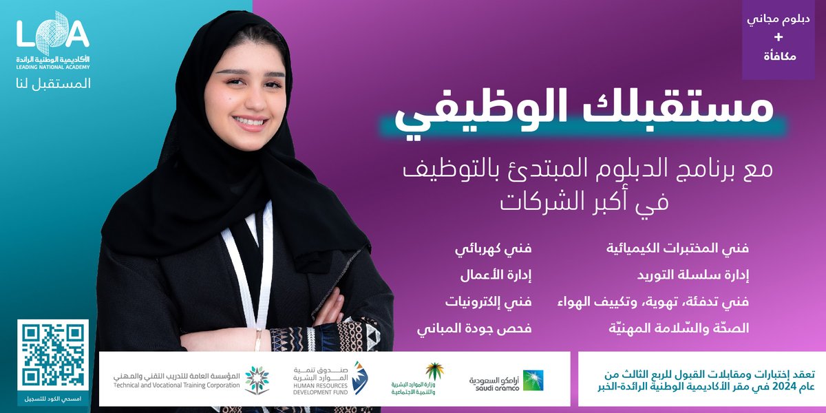 الأكاديمية الوطنية الرائدة (لنا) بمدينة الخبر عن برنامج تدريب مبتدئ بالتوظيف (لخريجات الثانوية)، للحصول على (دبلوم مُعتمد مجاني) في تخصصات تتناسب مع سوق العمل، مع عقود توظيف في كبرى الشركات بالمملكة.