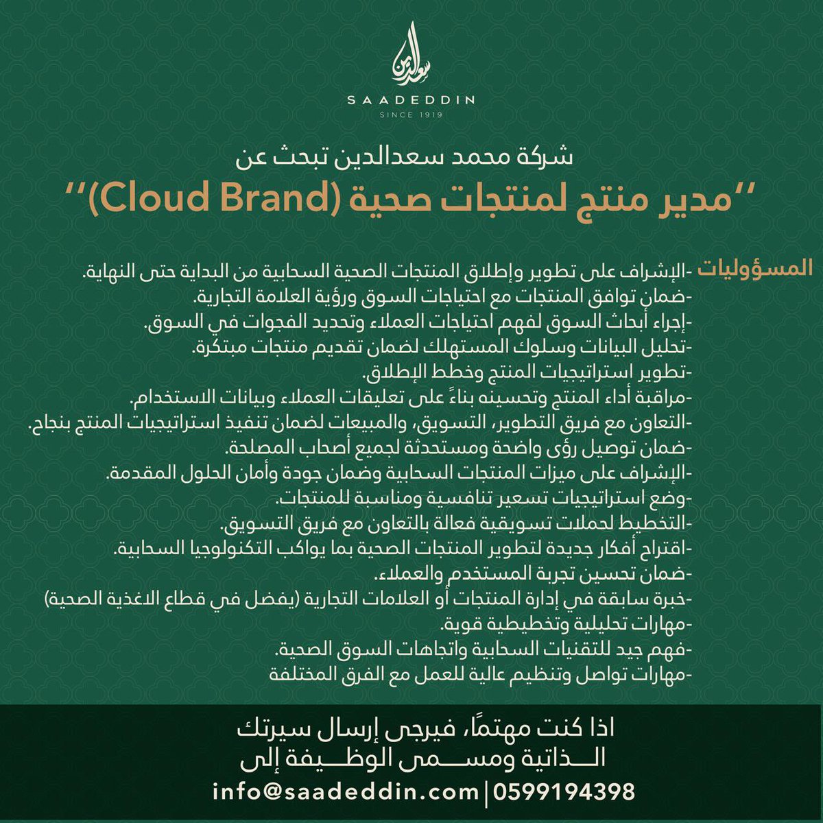 4- مدير منتج لمنتجات صحية (Cloud Brand).